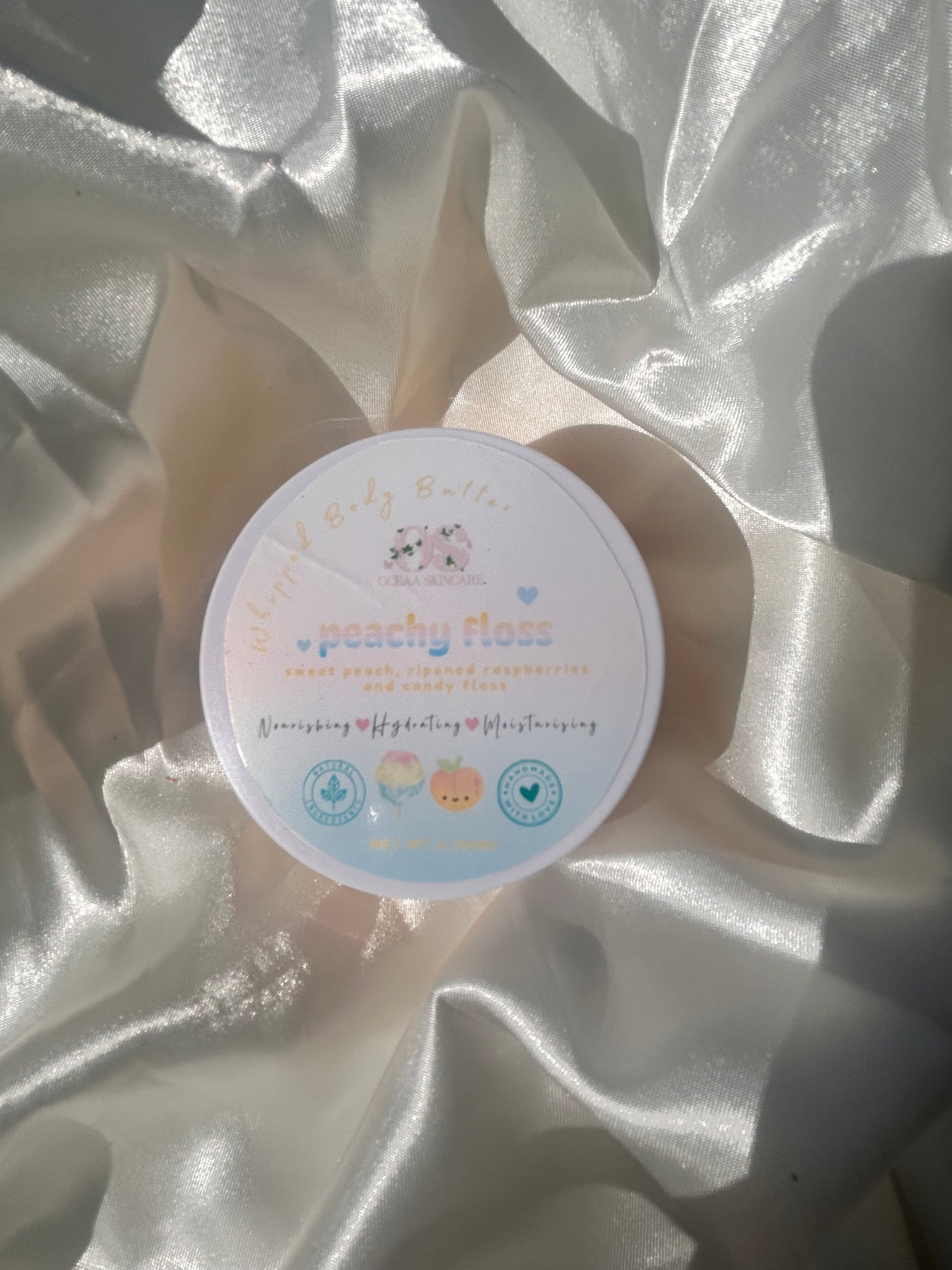 Experience the playful warmth of our Peachy Floss Body Butter, a whipped blend that captures the juicy sweetness of ripe peaches 🍑 paired with the light, sugary touch of candyfloss 🍭. The scent is bright, nostalgic, and perfectly balanced—sweet without being overpowering. A decadent treat!